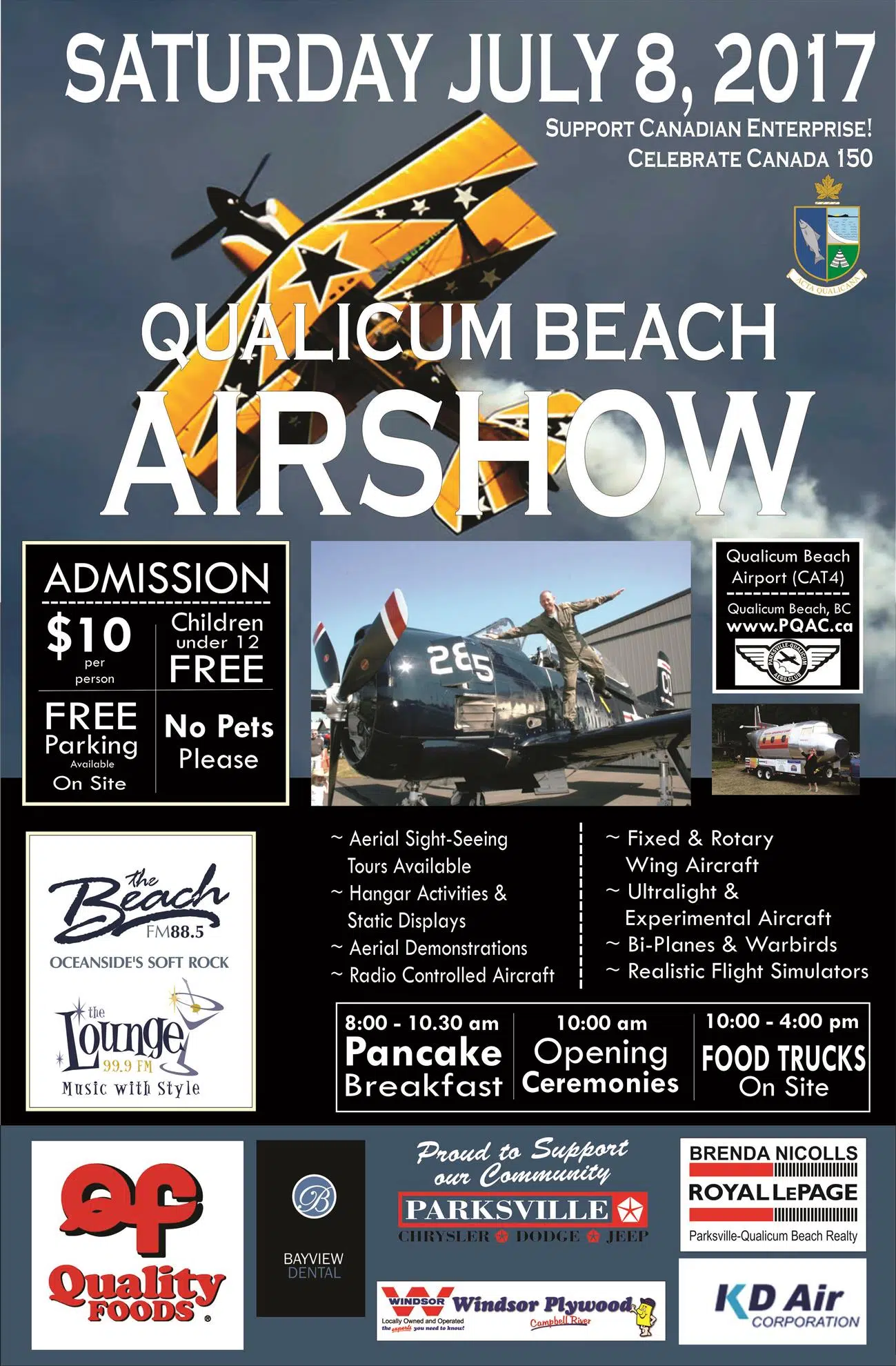 Parksville-Qualicum Aero Club and their annual Qualicum Beach Airport Day & Air Show is coming up on Saturday, July 8th, out at the Qualicum Beach Airport. Admission is $10 per person, children under 12 as well as parking are free