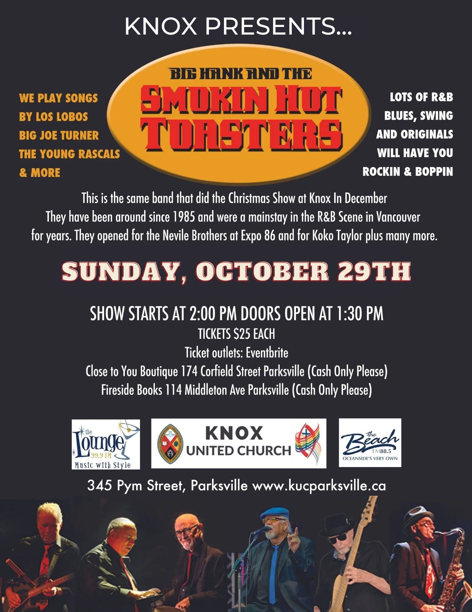 Knox Presents Big Hank & The Smokin Hot Toasters on Sunday, October 29th at 2:00 p.m.
