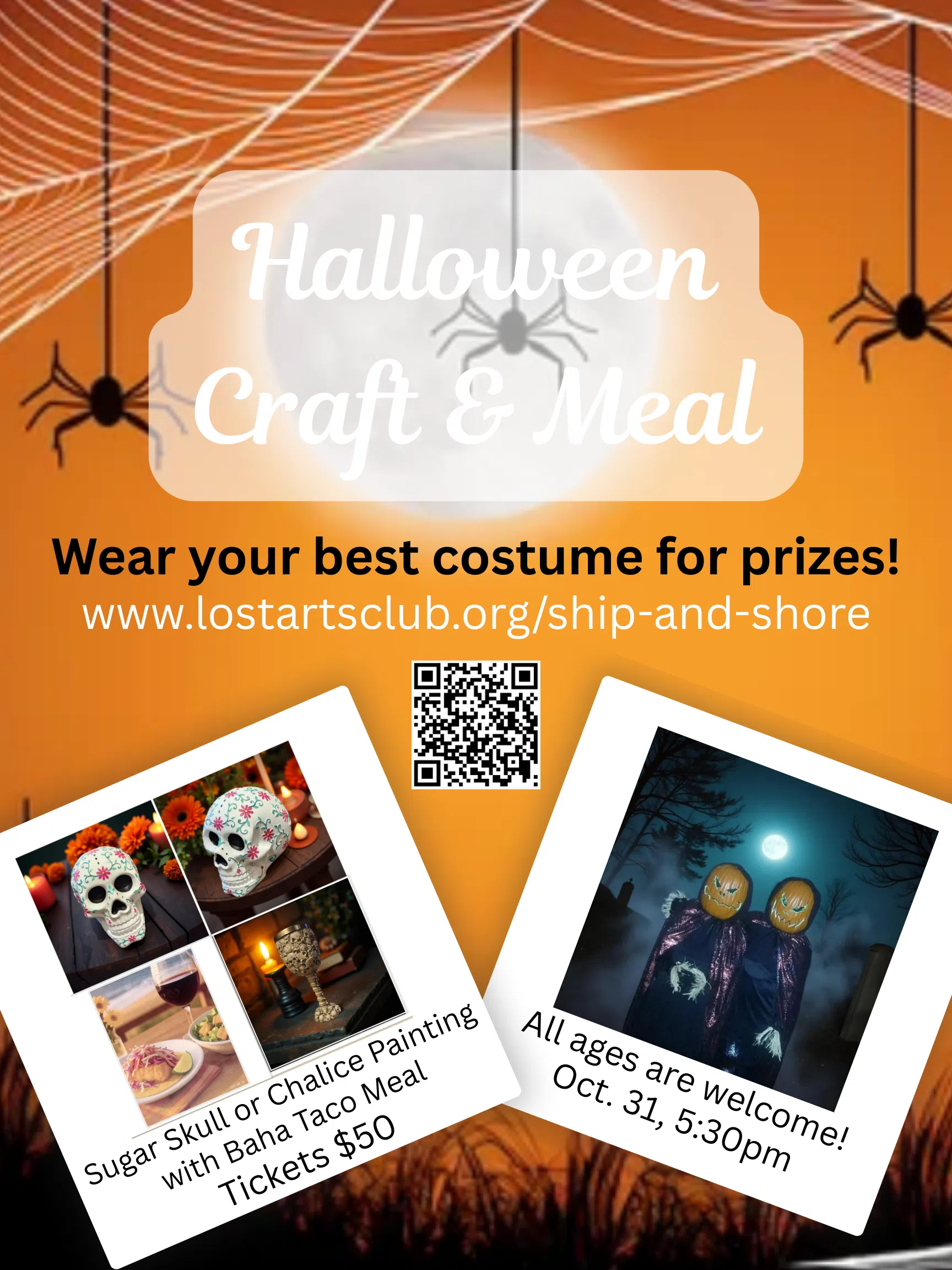 Enjoy a delicious Baja cod taco topped with coleslaw, pickled onion, Pico de Gallo, and drizzled with lime crema, plus a side Caesar salad with our homemade dressing, bacon bits, and croutons. Your ticket also includes one drink — choice of red or white house wine, draft beer, soda, or juice. Prizes will be awarded for best costume!