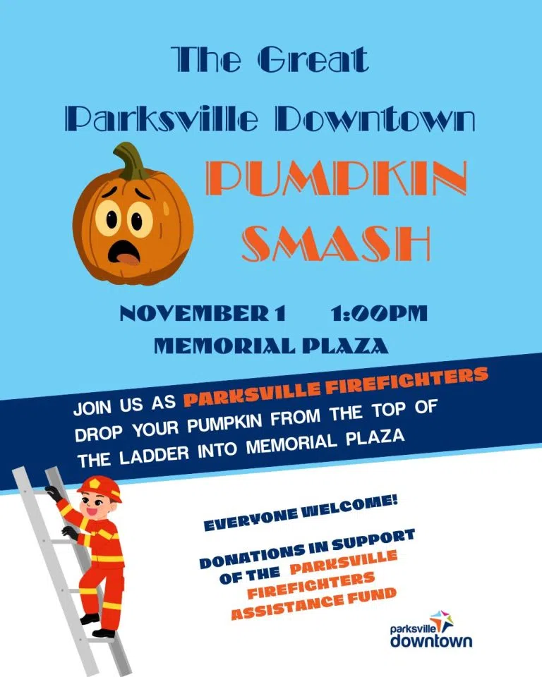 Say goodbye to your pumpkins in the most satisfying way possible! Squash some pumpkins with the Parksville Fire Rescue at Memorial Plaza, November 1, at 1 pm - 2:30 pm.